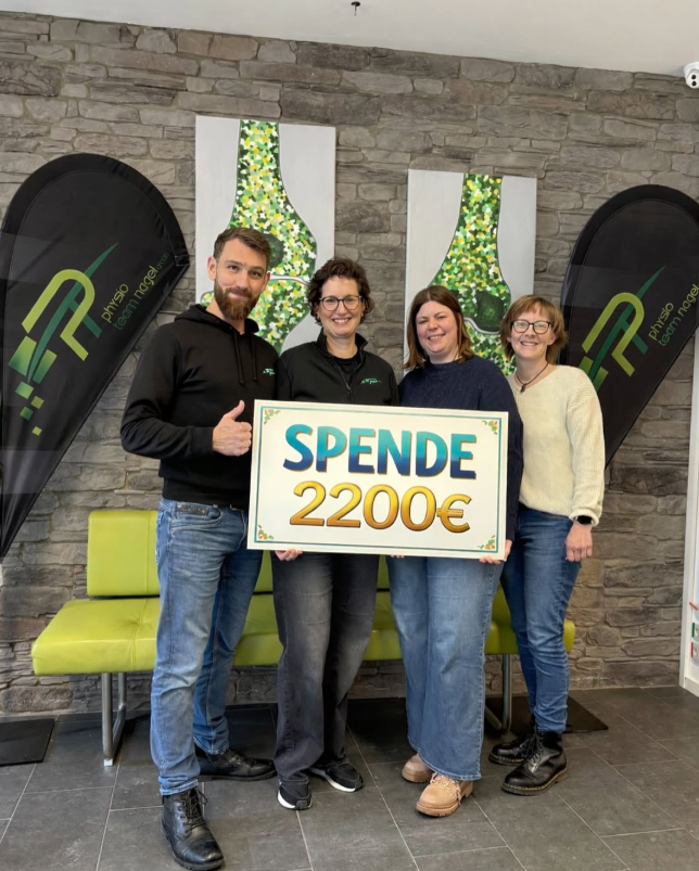 Unsere Patientinnen, Patienten und Trainierenden haben 1.200 Euro gespendet, und wir als Team durften weitere 1.000 Euro beitragen.